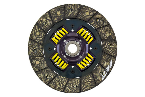 3000203 is a performance street disc and the most popular disc purchased. It features premium organic materials with high copper content for better heat transfer. Performance street discs allow for quicker shifting and smooth engagement. These discs feature a reduced marcel for faster shift action to complement ACT pressure plates. ACT spring-centered assemblies use bushings and cone springs similar to factory clutch discs. This creates frictional dampening, which improves clutch life and reduces noise. Quiet operation with increased strength and reliability.