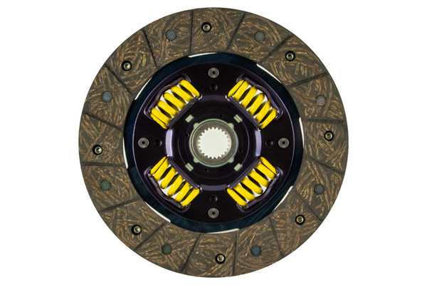 3000216 is a performance street disc and the most popular disc purchased. It features premium organic materials with high copper content for better heat transfer. Performance street discs allow for quicker shifting and smooth engagement. These discs feature a reduced marcel for faster shift action to complement ACT pressure plates. ACT spring-centered assemblies use bushings and cone springs similar to factory clutch discs. This creates frictional dampening, which improves clutch life and reduces noise. Quiet operation with increased strength and reliability.