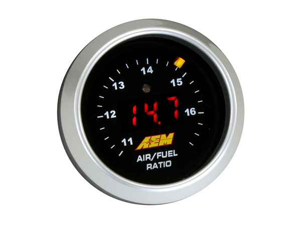 AEM's legendary Digital Wideband O2 AFR UEGO Gauge is a wideband UEGO air/fuel ratio controller (AFR) and gauge in one. It unites accuracy, speed and control with an easy to read, digital LED display and sweeping LED "needle" that changes colors as AFR changes from rich to lean. NOTE: The 30-4100 Wideband UEGO Gauge Controller that uses the 4.2 LSU sensor will be superseded to the 30-4110 Wideband UEGO Gauge Controller that uses the 4.9 LSU sensor in August 2014. Instructions for the 30-4100 will still be available in the Instructions tab after this change. WHAT IS A WIDEBAND UEGO AIR/FUEL CONTROLLER? AEM's Wideband UEGO (Universal Exhaust Gas Oxygen, pronounced "You-Way-Go") Controllers are powerful, cost-effective tuning tools that allow users to accurately monitor the Air/Fuel Ratio (AFR) of their engine. WHY USE A WIDEBAND AIR/FUEL CONTROLLER? Accurate AFR data is critical when tuning an engine. Running rich (very low air/fuel ratio, excessive fuel) can cause a loss in power, while running too lean (very high air/fuel ratio, not enough fuel) may result in serious engine damage. Using a wideband air/fuel controller during the tuning process allows you to monitor AFR and adjust tuning parameters to optimize them for maximum power and efficiency. AEM has a comprehensive line of highly accurate, reliable wideband air/fuel controllers that can help ensure your vehicle is optimally tuned. WHAT IS FREE-AIR CALIBRATION? Some of our competitors require that you frequently perform a free-air calibration procedure to calibrate their O2 sensors. This process involves removing the sensor from the bung while still connected to the controller device, then waving the sensor in the air so it can read atmospheric O2 levels. We use 4.9 LSU sensors in our wideband controllers. Our sensors are individually laboratory-calibrated and never require free air calibration!
