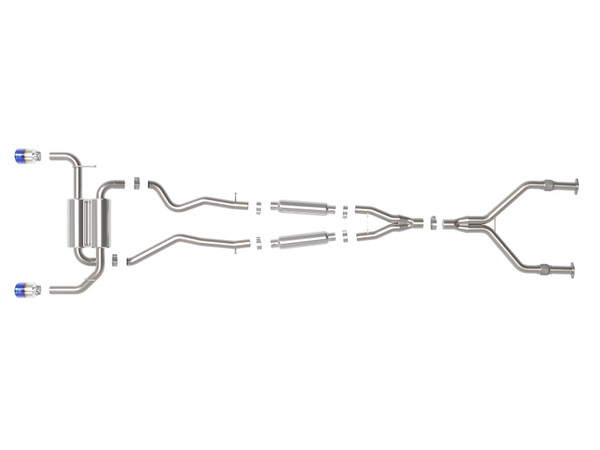 aFe 14-15 Infiniti Q50 V6 3.7L Takeda 2-1/2in 304 SS Cat-Back Exhaust System w/ Blue Flame Tips - 49-36136-L