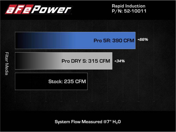 This 6” tall 360-degree radial flow air filter features a 3” round flange and our oiled Pro 5R media with five layers of progressively finer cotton gauze media for maximum airflow and performance. This media is best for street and track use. aFe POWER developed this sturdy 18-gauge steel wrinkle-black powder-coated heat shield to mount onto the top of the lower half of the factory airbox. One-Piece 3" Mandrel-Bent Wrinkle-Black Powder-Coated aluminum intake tube directs unrestricted airflow from the filter to the turbocharger for more horsepower and torque. All hardware and components are included for a hassle-free installation. This kit utilizes high quality, stainless steel clamps. This intake will fit with aFe Power Cover 54-12868-B and 54-12868-C.