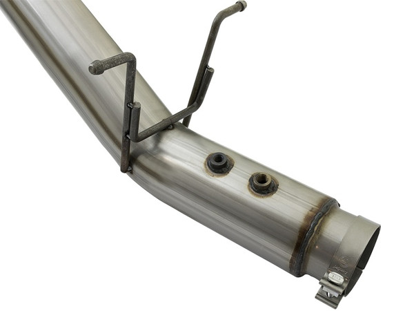 Simple Installation: All systems use factory mounting locations providing stability and hassle-free installation. Leak-Free Seal: High quality band clamps are included for a complete 360 degree sealing surface. OE Fit: OE-style bayonet hangers are used to maintain a stable pipe location during high vibration and high heat conditions. The bayonet tip holds the hanger bushing in place for an OE-style fit that does not change with time. Flow and Performance: This Large Bore-HD exhaust system is constructed of 5" mandrel-bent 409 stainless steel tubing for maximum flow. Smooth transition bends allow for low turbulence, increasing horsepower, torque and lowering EGT's. 6" Diameter Black Intercooled Tip: Finishing off the exhaust is a 6" diameter, black, stainless steel slash cut tip with intercooling vents designed to reduce exhaust gas temperatures at the tailpipe. A unique stainless steel laser-cut aFe Power logo plate is riveted on for an aggressive style.