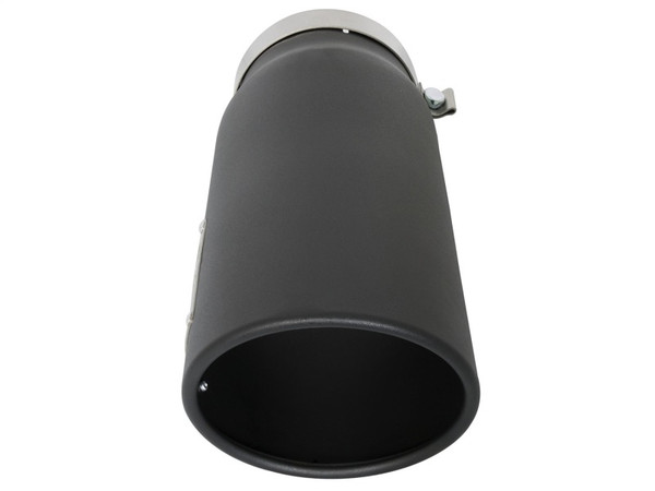 aFe Power is proud to introduce the all new diesel exhaust tip. This tip comes with a matte-black finish and is designed to fit 5" exhaust systems. With a 5" inlet x 6" outlet and 15" inch length, this single-walled, slash cut rolled tip comes with a unique laser-cut aFe Power logo plate riveted on for an aggressive style. Leak-Free Seal: A high quality stainless steel band clamp is used for a complete 360 degree sealing surface. aFe Badging: Comes with a unique laser-cut aFe Power logo plate riveted on for an aggressive style. Drain Port: A drain port on the bottom of the tip keeps rust and corrosion away.
