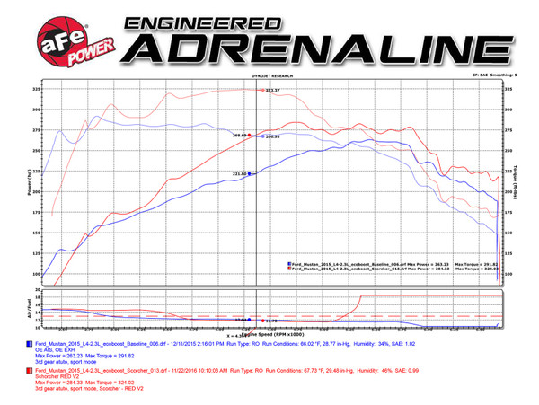 The aFe POWER SCORCHER BLUE Power module is the next generation of plug-and-play electronic module technology. It is the fastest way to safely gain significant horsepower, torque and improve drivability without modifying or leaving any trace on the Engine Control Unit (ECU). The SCORCHER BLUE features an LED control switch for in-cabin, on-the-fly power adjustments with different preset modes. With Bluetooth connectivity you can tap into your iOS or Android device to make power adjustments, custom tune different power modes, view gauges for engine parameters, upgrade to the latest version, measure acceleration times and more. The app is downloadable for free on the App Store or Google Play store. The SCORCHER BLUE Power module increases turbo boost and overall vehicle performance, producing double-digit power gains on our in-house dyno. Designed with factory-style connectors, it easily connects to engine sensors for a quick and simple install. The LED control switch can be routed through the firewall into the cabin or connect to the module via Bluetooth with the smartphone app. In-cabin, on-the-fly power adjustments can be made to accommodate your driving needs. Select one of four power settings on the in-cab LED control switch or control the module remotely via the free iOS or android app. The smartphone connects to the module via Bluetooth and displays engine parameters (MAP). This power module has four power settings loaded and identifiable with the LED light on the switch or smartphone app: Stock (Green), Sport (Yellow), Sport+ (Orange) and Race (Red). Bluetooth connectivity allows control of the module from you mobile device without the need to run any wires through the firewall. It also displays turbo boost gauge (MAP), allows you to customize each power mode, upgrade to the latest revision and even measure 0 to 60 ¼ mile times.