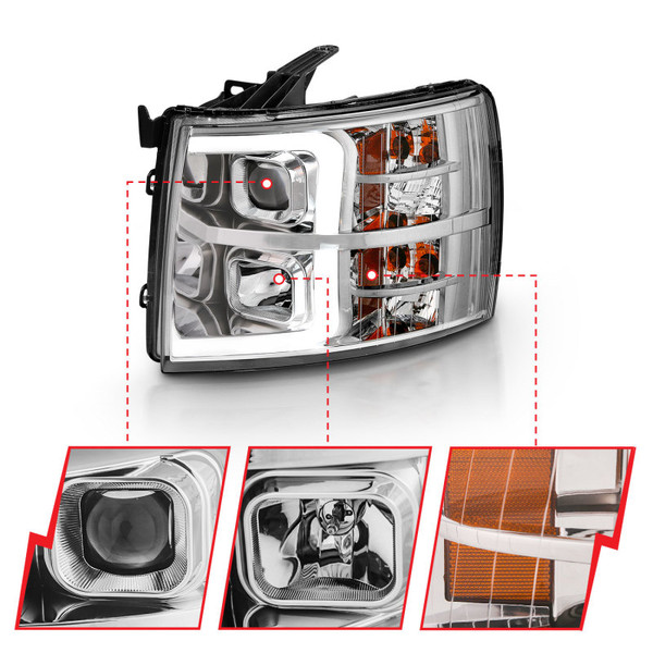 ANZO 2007-2013 Chevy Silverado 1500 Projector Plank Style Chrome Amber - 111481