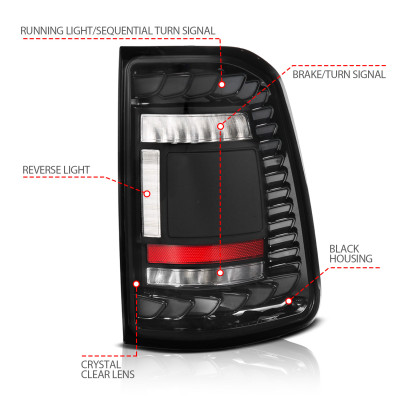 ANZO 21-25 Ford Bronco Full LED Tail Lights SeqSig Black - Pair
