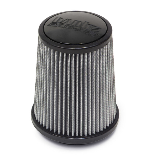 Easy to install replacement filter (oiled or dry). Increased airflow, excellent filtration, and longer service life. Banks Ram-Air filter is a high-flow air-cleaner element that decreases intake restriction and sends more cool, dense ram-air into your engine. Even wet or dirty, Banks Ram-Air filters outperform conventional ones, because the multi-layer design traps moisture, dust, and debris on the oiled or dry, outer surface, allowing air to move through with ease. Key Features: Increased airflow. Excellent filtration. Longer service life. Easy to install. DRY Air Filter Element