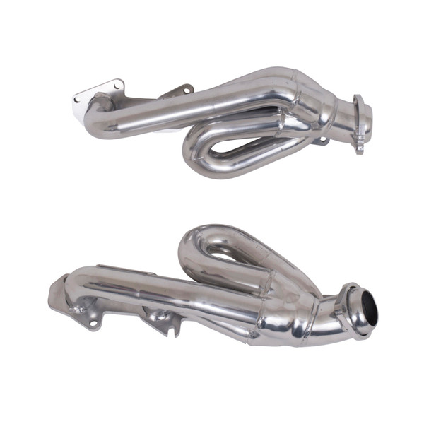 These BBK Performance shorty tuned Length exhaust Headers are designed and constructed as direct fit replacements for all 04-08 Dodge Ram truck 5.7L applications. Each header is manufactured with 1-5/8 in. CNC mandrel bent tubing that offers unrestricted exhaust flow for increased horsepower and torque over factory OEM manifolds. BBK tuned Length headers offer improved scavenging waves for better combustion, which leads to improved performance and fuel economy over stock or equal Length headers. As with all BBK Performance exhaust headers they feature a 3/8 in. laser cut flange for additional strength and a guaranteed leak free fit. All headers are robotically and precision hand welded and then pressure tested to ensure years of reliability and performance in the real world. All BBK exhaust headers are available in a titanium ceramic or polished silver ceramic coated finish and include new exhaust header gaskets, header bolts and hardware to complete the installation.