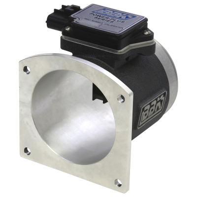 BBK Mass air flow meters MAF are a great choice for Mustang enthusiasts looking to improve airflow for increased performance or those who have upgraded to bigger fuel injectors. These BBK Mass Air flow sensors offer a large increase in air flow over stock and can add up to an additional 15 rear wheel horsepower depending on other modifications. All BBK mass air meters are CNC Machined large bore aluminum housings with a custom BBK calibrated electronic sensor placed on top to accurately measure air flow for accurate air fuel ratios. Available for 19lb, 24lb and 30lb fuel injectors with stock Factory Air Box calibrations (FAB) or Cold Air Calibrations (CAC) (Not Available For Cobra Applications)