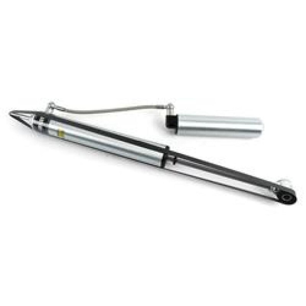 Bilstein B8 5160 remote reservoir shock absorbers are designed as a direct fit solution for lifted trucks and SUVs. The remote reservoir will offer increased cooling capacity and wheel travel to optimize overall performance compared to a traditional shock absorber. These shock absorbers feature a monotube design for consistent fade free performance and utilize velocity sensitive digressive valve settings which are tuned for each specific application. Each shock absorber is fitted with a unique 360 degree swivel banjo hose fitting and an attractive billet reservoir mount where applicable providing a clean, low profile installation. B8 5160 remote reservoir shock absorbers will increase overall durability of your vehicle allowing you to conquer the harshest of off-road environments.