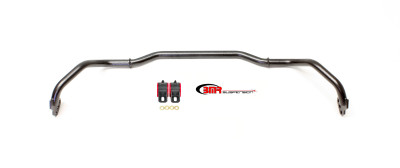 The two primary functions of sway bars are to control body roll and to determine the understeer or oversteer behavior of a vehicle. Stock sway bars have low torsional spring rates because they are manufactured from small diameter bar stock or tubing. BMR Suspensions SB038 front sway bar was designed by factoring in the vehicle weight, application, motion ratio, coil spring rate, and adjustability requirements. Manufactured from heavy-wall 29mm DOM tubing, the SB038 is cold formed to better resist torsional fatigue and retain its "memory" far longer than the hot-formed bars used by many competitors. The sway bar is CNC-formed for exact manufacturing tolerances and repeatable high quality. Thrust washers are welded to the bar to locate the sway bar bushing mounts. This is critical as it properly locates the sway bar and prevents lateral movement during hard cornering maneuvers. The sway bar mounts to the car using polyurethane bushings. These bushings are molded from 88-durometer, low-deflection, polyurethane, and are internally fluted to keeps grease in the bushing. The steel sway bar mounting brackets are reinforced to minimize deflection. The sway bar is 3-way adjustable to tune the amount of torsional spring rate and to determine the handling characteristics (understeer/oversteer) of the vehicle.