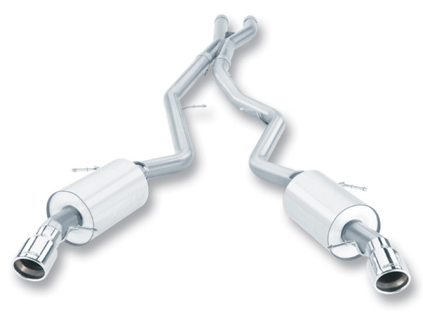 System includes a X-Pipe for increased performance and improved sound. System features polished T-304 stainless steel tips. Borla(r) Cat-Back(tm) & Axle-Back exhaust systems feature patented straight-through and multi-core technology designed to unleash hidden horsepower. Increased exhaust velocity adds power, driving excitement, fuel economy, and the distinctive Borla(r) Sound of Power respected by motoring enthusiasts everywhere. Each system is built from premium T-304 stainless steel, superior to T-400 series knockoffs (such as 409), to give you the absolute best in performance and durability. Ultra-smooth mandrel bends ensure maximum flow & power, and precision computer-controlled CNC manufacturing ensures an accurate fit. Best of all, Borla(r) stands behind every system with a Million-Mile Warranty. Just what you'd expect from the world's most experienced (and most winning) exhaust brand.