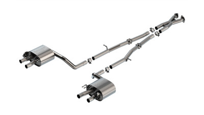 This Cat-Back™ system re-uses the factory tips and does NOT include tips. Optional BORLA® tips can be purchased separately. The system was designed specifically for the 3.3L Stinger GT with a True Dual configuration that is 2.25" diameter into the mufflers, with dual 2.25" out of the mufflers. It contains a Merge X-Pipe for increased performance and improved sound. The system features BORLA®'S Polyphonic Harmonizer Technology which utilizes patented units that contain pipes of different diameters and lengths to create multiple exhaust notes that harmonize to deliver a clean, rich, full-bodied sound to the muff®lers. The mufflers then enhance this sound to the character and volume appropriate for this S-Type system. Like all BORLA® Cat-Back™ and Axle Back systems, there is no drone inside the vehicle. The mufflers have dual 2.25" outlets. The exhaust exits through the Original Equipment (O.E.) valance. Tips NOT included, reuse O.E. valance. BORLA® Cat-Back™ & Axle-Back exhaust systems feature patented straight-through and multi-core technology to unleash hidden horsepower. Increased exhaust velocity adds power, driving excitement, fuel economy, and the distinctive BORLA® Sound of Power respected by motoring enthusiasts everywhere. Each system is built from premium T-304 austenitic stainless steel, superior to T-400 series knockoffs (such as 409), to give you the absolute best in performance and durability. Ultra-smooth mandrel bends ensure maximum flow & power, and precision computer numerical control (CNC) manufacturing ensures an accurate fit.Best of all, BORLA® stands behind every system with a Million-Mile Warranty. Just what you'd expect from the world's most experienced (and most winning) exhaust brand.