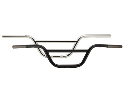The Jim is bent as a narrow clamp mount handlebar for splitting lanes and taking names. At 26 in. wide this is by far the skinniest bar Burly offers. Made with 1-inch steel tubing featuring slots for internal wiring and crowned for throttle by wire applications. Welded and mandrel bent for precision fit.