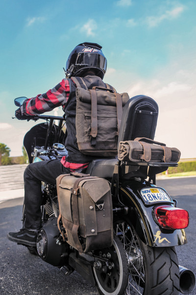 This Burly Brand Saddlebag is made out of wet waxed UV-treated cotton canvas and leather panels that offer support and will age and show character over time. A durable metal and polyurethane reinforced internal frame helps the bag keep it's shapely figure even when empty. The roll-top closure and Snap/Velcro Road Shield system helps keep the elements out. The high-quality moto-centric speed buckles and zippers as well as the anti-flap system makes sure everything stays secure. The bag features a main pocket with generous interior space. The Burly quick release pin-lock allows the bag to be removed easily and converted into an instant messenger bag or Euro carry-all hip satchel.