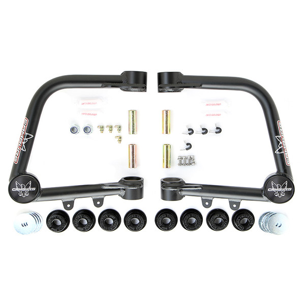Introducing the Camburg X-Joint, a high-performance ball-joint designed for extreme conditions. Made with heat-treated materials and an improved boot design, it offers increased strength, better greasing, and longer lifespan. The dual lip seal design prevents contamination, while the grease zerk fitting allows for easy maintenance. Specifically designed for our ball-joint upper arms, it provides optimal fit and maximum wheel travel. These arms correct suspension geometry, improve handling, and offer a wider range of alignment adjustment. With CNC bent tubes, MIG welded construction, and polyurethane frame pivot bushings, they are built to last. The package includes all necessary hardware and is made in the USA.