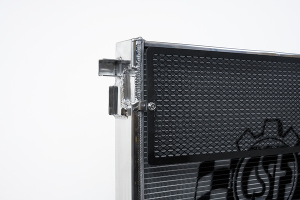 The CSF Heat Exchanger features a 2-Row (vs OEM single row) Core that is 42mm thick with CSF's Exclusive B-Tube Technology. Increasing the size of the core and end tanks adds to the overall volume of the system which helps absorb more heat. The more efficient core not only helps dissipate more heat from the system, but also provides better airflow into the radiator that sits behind the heat exchanger. For vehicles equipped with the ZF8 Automatic Transmission, the heat exchanger core specifications were design concurrently with CSF's new Race-Spec Dual Core Transmission Oil Cooler (CSF #8221). The two included Black Rock Guards offer full protection for the heat exchanger (above and below the crash bar), especially when paired with aftermarket "open face" race style grilles. These grilles have become quite popular for performance and aesthetics, and keeping your heat exchanger safe from debris is very important. With well over 100 track hours worth of testing and thousands of miles on the road, you can be assured that the CSF's new High-Performance Front Mount Heat Exchanger has been thoroughly tested and vetted.