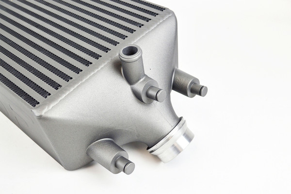 CSF's Porsche 991 Turbo intercoolers have been race-tested, logged, and fully validated by some of the world's best Porsche tuners. These intercoolers have been regarded as the "Go-To" option for the best performance and value available in the performance aftermarket. From first glance the increase in width from the OEM's 80mm core to the CSF's 115mm width is very apparent. Critical for vehicles running performance tunes with bolt-on modifications. Considered a mandatory upgrade for vehicles running upgraded turbo systems. The larger capacity CSF bar/plate core design can handle significantly more airflow + increased boost pressures compared to the OEM intercooler system. CSF's 100% TIG welded cast end tanks, paired with its high-efficiency bar/plate intercooler core. Compared to the OEM style tub/fin core, which is crimped onto the plastic end tanks. The weaker OEM design can crack under high boost or vibrations typical to race conditions. The design of CSF's end tanks allows for airflow to be distributed evenly throughout the entire intercooler compared to the OEM intercooler design which is much shallower. The OEM design makes it more difficult for airflow to reach the top/bottom tube sections at the ends of the intercooler. CSF's Porsche 991 Turbo intercoolers are finished with an aero-space grade, Nano-particle, heat dispersion coating that dissipates heat around 35% better than uncoated raw aluminum. The coating is applied in California, USA by an aerospace coating company who also supplies coatings for Boeing. This unique coating is a key feature to achieving world-record performance, exclusively available from CSF.