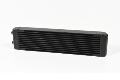 The unique design of CSF's oil cooler line has distinct advantages over conventional style oil coolers (plate-type/stacked oil coolers). The oil coolers can be placed in tighter spaces or different areas of the vehicle that don't have much vertical surface area. Longer rectangular sizes can also help with avoiding the stacking of too many coolers which may cause airflow issues to other components in the cooling system. Inlet/outlet port placement is much easier to route oil lines. Typical oil cooler lines have to be routed from different/opposite ends of the cooler often facing up or down. Usually one line has to run across from one side of the cooler to the other to then be routed together to the feed/return connection of the oil system. The CSF oil coolers are much more robust, durable, and can withstand a higher peak burst rate. This allows the cooler to be mounted in areas that might get high debris (front fascia, diff cooler, side vents, etc...). The CSF oil cooler is designed to withstand a tremendous amount of vibration and debris.