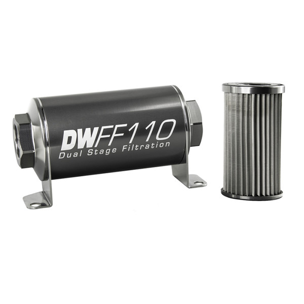 DeatschWerks Stainless Steel 10AN 10 Micron Universal Inline Fuel Filter Housing Kit (110mm) - 8-03-110-010K