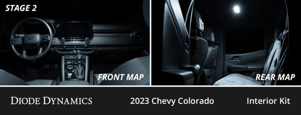 Features Add a modern, cool white appearance. Increased output with LED bulbs. Includes LED replacements for all interior incandescent bulbs. Plug-and-play, simple installation. Overview Increase your light output and add a modern appearance to your vehicle with our Interior LED Conversion Kit compatible with Chevrolet Colorado! Factory interior lighting leaves much to be desired with a dated appearance and lackluster performance. By replacing your outdated halogen bulbs with LEDs, you’ll give your vehicle a more modern appearance, and significantly increase the output of your interior lighting. Modern Appearance. The LED bulbs included in this kit feature a 6000K true cool white output without any blue - just like factory installed LEDs. This provides a serious upgrade in the overall appearance of your interior when compared to the factory halogen bulbs. All Diode Dynamics LED bulbs are tested in-house, so you know you’re getting consistent performance. Brightness. This kit is available in two levels of brightness, Stage 1 and Stage 2. Stage 1 gives your interior an ultra-modern appearance, while providing a slight increase in output compared to your factory lighting. Stage 2 steps things up with a significant increase in overall light output throughout the interior. Plug-and-Play. The LED bulbs included in this kit feature plug-and-play connections for simple installation. Our bulbs are not constructed with cheap connectors, so you don’t have to worry about them coming loose and falling out. Simply remove your factory bulbs and these will fit right in place! Two plastic trim removal tools are included to assist with installation. If any bulb does not light up when you turn it on, simply remove the bulb, rotate it 180 degrees and reinstall.