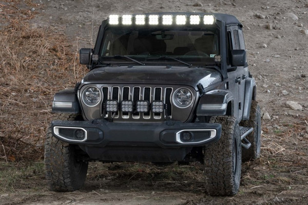 Features Bolt-on fitment compatible with Jeep JL Wrangler 2018-2021 Ultra-high intensity, with custom-engineered TIR optics Selectable backlight color, with eight color options Torture-tested, heavy-duty construction Control through factory aux switch bank using the included harness Assembled in USA Overview Perfect Fitment. The Windshield CrossLink Lightbar Kit compatible with Jeep JL Wrangler 2018-2021 from Diode Dynamics allows you to mount eight linked SS5 LED pods above the factory windshield. These application-specific brackets were CAD-designed to bolt into place using factory mounting points above the factory windshield. No cutting or drilling required! Designed for Performance. Featuring the highest output intensity of any 5-inch LED pod on the market, these lamps have been designed for maximum functionality, with patented technology and custom-engineered TIR optics, all in a durable package. Selectable Backlight. The SS5 LED Pods included in the White kit feature a selectable backlight with eight different color options, perfect for extra styling, or for more visibility when you’re not using the main beam. Selecting your backlight color is easy - simply alternate the power on and off. There’s no complicated programming with a controller! The SS5's backlight fully illuminates the TIR optic, providing unique accent lighting that you won't find on other LED pods. NOTE: Due to the yellow lens, the Yellow kit is only available with an Amber backlight. CrossLink. Our patent-pending CrossLink technology allows you to link up to eight SS5 pods together to create your own lightbar. The single-piece CNC aluminum link provides extreme rigidity, but is fully adjustable, for both straight and curved configurations.