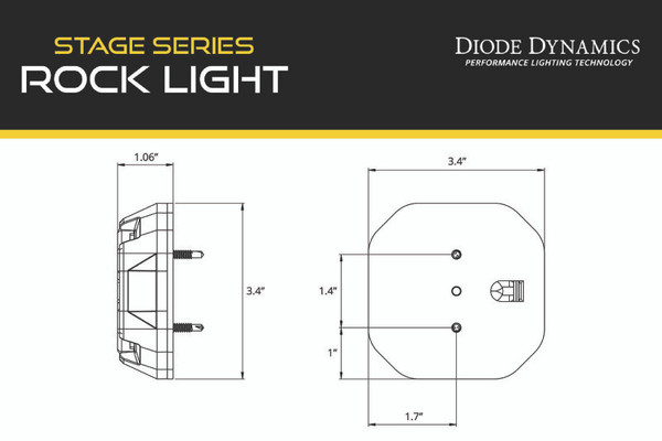 Rock Light Surface Mount Adapter Kit Allows for surface mount installation on a flat surface Compatible with Stage Series Rock Lights Constructed of black powdercoated aluminum Includes 20-degree angled rubber pad   Overview Surface Mount. This surface mount kit allows you to mount your Stage Series Rock Light on any flat surface. A 20-degree rubber mount is included if you would like to mount your rock lights at an angle. Experience. After over a decade in business, Diode Dynamics is the most trusted name in automotive LED lighting. Unlike every other LED distributor, we manufacture and engineer products ourselves in the United States, for high quality and fast time-to-market of the newest and brightest LED technologies. We pride ourselves in offering only quality LED products, that will exceed your expectations. Please contact us if you'd like to discuss your lighting project!