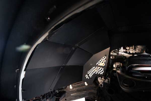 These Bronco Inner Fenders bring utility and style to your front wheel wells. They are constructed from 1.5mm & 2.0mm lightweight aluminum panels, then finished in a Satin Black powder coat. Aluminum mesh panels increase airflow to the engine compartment. These mesh panels can be removed and painted, or left in their raw aluminum tone.