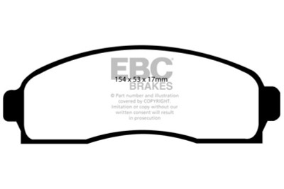 The UK EFI Bristol factory of EBC Brakes has used new ECO friendly technology to develop a brake pad that has unusually high friction levels yet still has good manners for street use with brake effect being strong from cold when the brake is first applied. The race pedigree of the material used also guarantees effective stopping up to temperatures exceeding 1400 F well above the maximum experienced in heavy braking, towing or downhill descents. Winter testing in Ohio on a fleet five popular light trucks showed us the proof on cold braking in the worst wet and cold conditions where many performance brakes would not even start to show good brake effect. So these are pads that have an extremely wide range of usability. The new carbon granule based Extra Duty material is also rotor friendly, minimal in dust and noiseless and each set is supplied with revolutionary NUCAP piston insert shims, another first from EBC