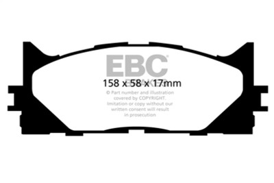 There are TWO reasons our customers love Redstuff, First because they are the lowest dust pad we have encountered by reducing dust by 60-90-percent. Plus the minimal dust you see is very easily removed with a simple sponge wash as it contains no steel fibre particles as in ALL OTHER pads. Second they brake like an alligator right from cold (as good as Original pads or better) and just get better as they heat up.This material is a Synthetic Fiber based brake compound enhanced with ceramic particles. If you have previously tried EBC redstuff (pre-ceramic compound) this material is light years ahead. It lasts longer; it brakes better and is quieter. Being a hard wearing pad, bed-in times can be as long as 1000 miles and drivers must be patient until the pad takes up the shape of their disc (brake rotor). This is a truly impressive fast road pad for repeated heavy braking.It emits far less dust than semi-metallic pads and has been proven to stop a passenger car/sedan/sport compact/hot hatch 13 metres quicker than OEM pads from 100mph/160kph. Features EBC Brake-In surface coating which conditions rotor surface and accelerates pad bed-in. Nominal friction coefficient 0.5 with approx. 50-percent dust reduction.Most EBC Red Ceramic pads are approved to ECE R90 brake safety regulation.