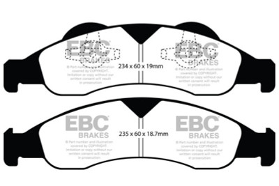 The UK EFI Bristol factory of EBC Brakes has used new ECO friendly technology to develop a brake pad that has unusually high friction levels yet still has good manners for street use with brake effect being strong from cold when the brake is first applied. The race pedigree of the material used also guarantees effective stopping up to temperatures exceeding 1400 F well above the maximum experienced in heavy braking, towing or downhill descents. Winter testing in Ohio on a fleet five popular light trucks showed us the proof on cold braking in the worst wet and cold conditions where many performance brakes would not even start to show good brake effect. So these are pads that have an extremely wide range of usability. The new carbon granule based Extra Duty material is also rotor friendly, minimal in dust and noiseless and each set is supplied with revolutionary NUCAP piston insert shims, another first from EBC