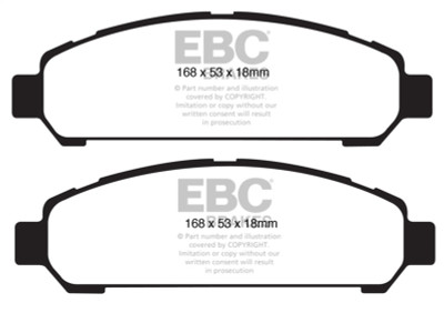 If you simply need a quality OEM replacement pad, look no further than Ultimax. Made in the UK Bristol EBC Brakes manufacturing plant Ultimax is a beautifully engineered brake compound that lasts well, produces minimal dust and is the perfect choice for the urban or daily driver. Why spend more if all you need is a quality replacement pad.The Ultimax pad does include a small percentage of steel fibre to achieve its price point, far less content than our competition where steel fibre content can attain 50 volume and this optimum fibre blend is what makes Ultimax both popular and unique amongst brake blends .Once bedded in Ultimax will inspire confidence in any car light truck or SUV no matter how you drive.Its universal heat range abilities and low rotor wear are additional benefits of the Ultimax pad range which is the EBC worldwide number one selling brake with numbers of sets sold running into tens of millions over the recent years. Unlike many of our performance grades Ultimax has remain unchanged as a pad compound for ten years now, a true testament to its success and customer acceptance. Why change a winning formula.Black coded in the EBC range EBC Ultimax is a fully ECE R 90 approved brake pad range and at its lower price point, less than HALF the price of original parts yet TOTALLY EQUIVALENT by nature of its R 90 brake safety approval, Ultimax offers great value for money and first class driving safety.When replacing brakes of any kind please remember how important brake safety is to your own well being and either have a professional mechanic install your new brakes or if you are a qualified mechanic use the EBC installation DVD as a guide in support of your vehicle owner's manual. These installation guide DVD tasters can be viewed here and the full DVD purchased from online vendors.