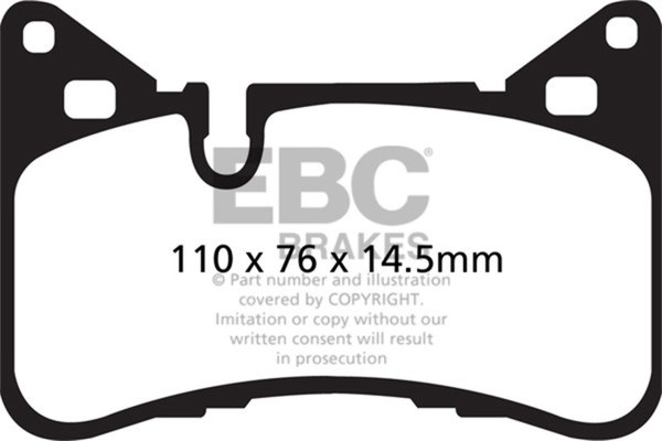 There are TWO reasons our customers love Redstuff, First because they are the lowest dust pad we have encountered by reducing dust by 60-90-percent. Plus the minimal dust you see is very easily removed with a simple sponge wash as it contains no steel fibre particles as in ALL OTHER pads. Second they brake like an alligator right from cold (as good as Original pads or better) and just get better as they heat up.This material is a Synthetic Fiber based brake compound enhanced with ceramic particles. If you have previously tried EBC redstuff (pre-ceramic compound) this material is light years ahead. It lasts longer; it brakes better and is quieter. Being a hard wearing pad, bed-in times can be as long as 1000 miles and drivers must be patient until the pad takes up the shape of their disc (brake rotor). This is a truly impressive fast road pad for repeated heavy braking.It emits far less dust than semi-metallic pads and has been proven to stop a passenger car/sedan/sport compact/hot hatch 13 metres quicker than OEM pads from 100mph/160kph. Features EBC Brake-In surface coating which conditions rotor surface and accelerates pad bed-in. Nominal friction coefficient 0.5 with approx. 50-percent dust reduction.Most EBC Red Ceramic pads are approved to ECE R90 brake safety regulation.
