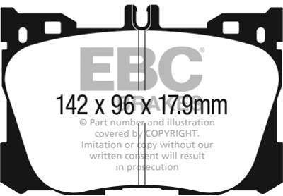 There are TWO reasons our customers love Redstuff, First because they are the lowest dust pad we have encountered by reducing dust by 60-90-percent. Plus the minimal dust you see is very easily removed with a simple sponge wash as it contains no steel fibre particles as in ALL OTHER pads. Second they brake like an alligator right from cold (as good as Original pads or better) and just get better as they heat up.This material is a Synthetic Fiber based brake compound enhanced with ceramic particles. If you have previously tried EBC redstuff (pre-ceramic compound) this material is light years ahead. It lasts longer; it brakes better and is quieter. Being a hard wearing pad, bed-in times can be as long as 1000 miles and drivers must be patient until the pad takes up the shape of their disc (brake rotor). This is a truly impressive fast road pad for repeated heavy braking.It emits far less dust than semi-metallic pads and has been proven to stop a passenger car/sedan/sport compact/hot hatch 13 metres quicker than OEM pads from 100mph/160kph. Features EBC Brake-In surface coating which conditions rotor surface and accelerates pad bed-in. Nominal friction coefficient 0.5 with approx. 50-percent dust reduction.Most EBC Red Ceramic pads are approved to ECE R90 brake safety regulation.