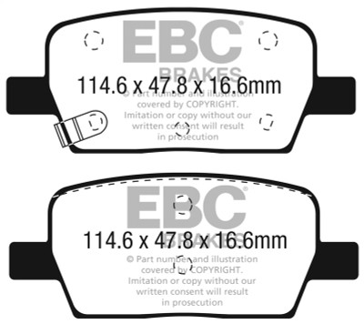 If you simply need a quality OEM replacement pad, look no further than Ultimax. Made in the UK Bristol EBC Brakes manufacturing plant Ultimax is a beautifully engineered brake compound that lasts well, produces minimal dust and is the perfect choice for the urban or daily driver. Why spend more if all you need is a quality replacement pad.The Ultimax pad does include a small percentage of steel fibre to achieve its price point, far less content than our competition where steel fibre content can attain 50 volume and this optimum fibre blend is what makes Ultimax both popular and unique amongst brake blends .Once bedded in Ultimax will inspire confidence in any car light truck or SUV no matter how you drive.Its universal heat range abilities and low rotor wear are additional benefits of the Ultimax pad range which is the EBC worldwide number one selling brake with numbers of sets sold running into tens of millions over the recent years. Unlike many of our performance grades Ultimax has remain unchanged as a pad compound for ten years now, a true testament to its success and customer acceptance. Why change a winning formula.Black coded in the EBC range EBC Ultimax is a fully ECE R 90 approved brake pad range and at its lower price point, less than HALF the price of original parts yet TOTALLY EQUIVALENT by nature of its R 90 brake safety approval, Ultimax offers great value for money and first class driving safety.When replacing brakes of any kind please remember how important brake safety is to your own well being and either have a professional mechanic install your new brakes or if you are a qualified mechanic use the EBC installation DVD as a guide in support of your vehicle owner's manual. These installation guide DVD tasters can be viewed here and the full DVD purchased from online vendors.
