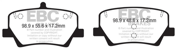 Designed for premium street driving offering better brake effect up to 600-degrees C (1100-degrees F). EBC Greenstuff has a high initial brake effect and gives drivers confidence from first application of the brake pedal. There is no such thing as a NO DUST pad. The very nature of how a brake works requires that some dust be generated to avoid rotor vibration (shimmying). The EBC pad creates less dust and dust is more easily washed off than most. All pads create more dust as they are bedding in especially if rotors are worn. Nominal friction coefficient 0.55. For heavier faster cars and vehicles above 200bhp we strongly recommend Redstuff which DOES offer much less dust.