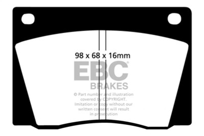 EBC Yellowstuff is an aramid fibre based brake compound with high brake effect form cold and is possibly one of the first ever compounds that can be used for STREET AND TRACK DRIVING. These pads do not require warm up but do get even stronger under the heat of hard driving. These are not a low dust pad and if your desire is for a low dust premium street use pad, you should consider EBC Redstuff.When considering full race use, Yellowstuff has been a strong favourite, having been used for two years in the Swedish Camaro Cup and at numerous other race events where a stock caliper system is fitted.It is also the choice of 90-percent of the Mazda MX5 Miata competitors in the UK race series and has an unblemished record as rotor friendly track pad for vehicles up to 2000 lbs weight or 200 BHP.In the USA the SCCA and NASA drivershave been testing Yellowstuff with feedback and good reports POURING in from a 543 test driver major market proving event with these groups. Read that figure again 543 test drivers.There is no guesswork here.