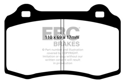 Designed for premium street driving offering better brake effect up to 600-degrees C (1100-degrees F). EBC Greenstuff has a high initial brake effect and gives drivers confidence from first application of the brake pedal. There is no such thing as a NO DUST pad. The very nature of how a brake works requires that some dust be generated to avoid rotor vibration (shimmying). The EBC pad creates less dust and dust is more easily washed off than most. All pads create more dust as they are bedding in especially if rotors are worn. Nominal friction coefficient 0.55. For heavier faster cars and vehicles above 200bhp we strongly recommend Redstuff which DOES offer much less dust.