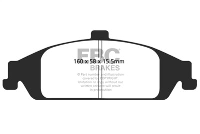 Designed for premium street driving offering better brake effect up to 600-degrees C (1100-degrees F). EBC Greenstuff has a high initial brake effect and gives drivers confidence from first application of the brake pedal. There is no such thing as a NO DUST pad. The very nature of how a brake works requires that some dust be generated to avoid rotor vibration (shimmying). The EBC pad creates less dust and dust is more easily washed off than most. All pads create more dust as they are bedding in especially if rotors are worn. Nominal friction coefficient 0.55. For heavier faster cars and vehicles above 200bhp we strongly recommend Redstuff which DOES offer much less dust.