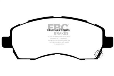 If you simply need a quality OEM replacement pad, look no further than Ultimax. Made in the UK Bristol EBC Brakes manufacturing plant Ultimax is a beautifully engineered brake compound that lasts well, produces minimal dust and is the perfect choice for the urban or daily driver. Why spend more if all you need is a quality replacement pad.The Ultimax pad does include a small percentage of steel fibre to achieve its price point, far less content than our competition where steel fibre content can attain 50 volume and this optimum fibre blend is what makes Ultimax both popular and unique amongst brake blends .Once bedded in Ultimax will inspire confidence in any car light truck or SUV no matter how you drive.Its universal heat range abilities and low rotor wear are additional benefits of the Ultimax pad range which is the EBC worldwide number one selling brake with numbers of sets sold running into tens of millions over the recent years. Unlike many of our performance grades Ultimax has remain unchanged as a pad compound for ten years now, a true testament to its success and customer acceptance. Why change a winning formula.Black coded in the EBC range EBC Ultimax is a fully ECE R 90 approved brake pad range and at its lower price point, less than HALF the price of original parts yet TOTALLY EQUIVALENT by nature of its R 90 brake safety approval, Ultimax offers great value for money and first class driving safety.When replacing brakes of any kind please remember how important brake safety is to your own well being and either have a professional mechanic install your new brakes or if you are a qualified mechanic use the EBC installation DVD as a guide in support of your vehicle owner's manual. These installation guide DVD tasters can be viewed here and the full DVD purchased from online vendors.