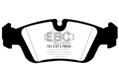 RP-X(TM) Racing Front Brake Pads by EBC(R). EBC Racings RP-X compound is an ultra-high performance track and race pad designed for performance vehicles driven hard on track and for dedicated race cars. RP-X has a very stable friction coefficient of 0.55 mu up to and beyond 850 C, making it an excellent performer for even the most demanding vehicle applications.
