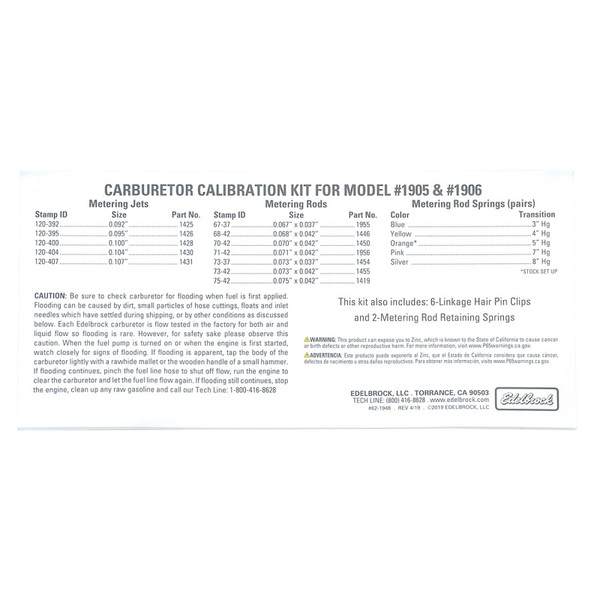 Edelbrock Calibration Kit for 1905 / 1906 - 1948