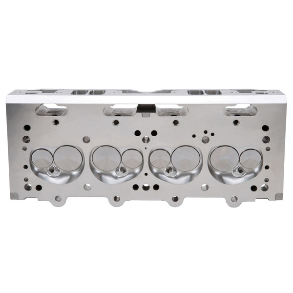 These Edelbrock #61729 Victor Series cylinder head is for use on 1967-1991, 318-360 c.i.d. Chrysler LA engines. They feature fully CNC ported 58cc combustion chambers and have an intake port volume of 225cc. This cylinder head is an in-line valve design incorporating a 16deg valve angle (stock is 18deg) for improved air flow and increased power levels over heavily ported stock versions. They also feature the Chrysler W5 bolt pattern and have raised exhaust ports. The intake port has also been raised approximately 3/4" and the flange has also been extended to accommodate a stock (race) intake manifold such as our Super Victor #2815. Finally, a 5.56" overall length valve (+0.600" from stock) and raised rocker cover permit larger port cross-sections than in the stock head. Four versions are available; bare, bare with valves, complete (for hydraulic/flat tappet cams and solid roller cams) and Pro Port Raw. End-seal spacers are provided.
