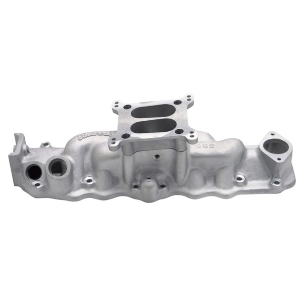 Edelbrock part #1107 Ford Flathead 4-barrel intake manifold for 1949-53 engines. This intake manifold allows the use of square-bore carbs such as the Edelbrock Performer Series or Thunder Series AVS 500. This is a reproduction of the vintage Edelbrock #452 two-piece manifold with a new carb adapter flange.