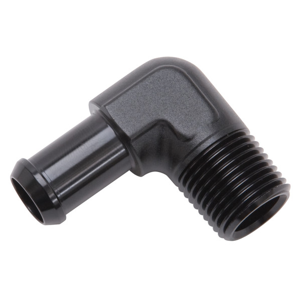 Edelbrock Hose End 90-Deg 1/2In NPT to 5/8In Barb Black Anodize - 8178