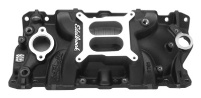 Edelbrock part #2703 Performer EPS intake manifold is designed for 1986 and earlier 262-400 cubic-inch Chevys. Edelbrock's Patented Dual-plane, low-rise design with a 180-degree firing order greatly improves torque over a wide rpm range for excellent throttle response. This intake manifold combines a modern runner design with a front mounted oil fill tube for those who want the vintage look of our Classic valve covers with no breathers. This small-block Chevy manifold has a runner design that's "tuned" for peak torque at 3500 rpm on a 350-inch engine and it's ideal for power from off-idle to 5500 rpm. Dyno tests showed gains of 5 hp and 9 ft-lbs. of torque over the Edelbrock Performer intake manifold #2101 on a 350 Chevy. From 3000 to 4500 rpm, the increases averaged 5+ ft-lbs. of torque for more performance where you need it most. In addition, the Edelbrock Performer EPS #2703 dual-plane intake manifold is optimized to deliver superior performance with Edelbrock square-bore Performer Series or Thunder Series AVS carburetors. Includes Oil Fill Tube (not installed) and matching push-in breather cap.
