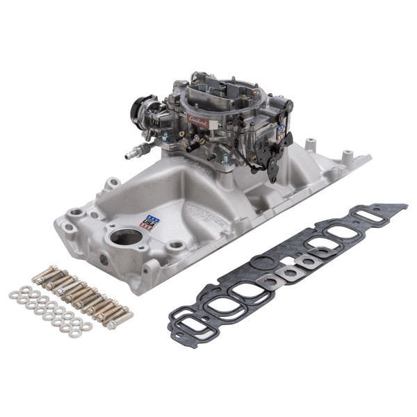 The Edelbrock #2062 Single-Quad Manifold and carb kit is designed for Big-Block Chevy Oval Port applications. With a Manifold and Carb Kit, it's easy to upgrade your induction system with the best combination of Edelbrock proven performance and looks in a single box. These kits include: an Edelbrock manifold, Performer or Thunder Series AVS carb, chrome fuel inlet, intake gasket set, intake bolt set and carb stud kit. The manifold and carbs are available with a standard satin finish or with our bright EnduraShine chrome-like finish for long lasting show quality looks.