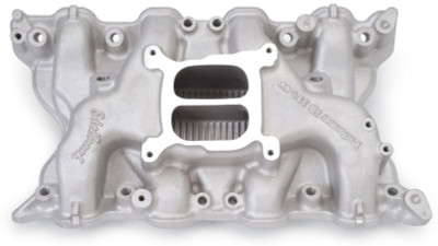 Edelbrock part #2750 Performer 351-2V intake manifold is designed for street 351C and accepts 4V carb, however it's designed to improve the performance of engines that came stock with 2V carb and heads. Manifold will fit Boss 302 or accept stock Motorcraft spread-bore carb. End-seal flange width measures 6-31/32". Edelbrock's Patented Dual-plane, low-rise design with a 180-degree firing order greatly improves torque over a wide rpm range for excellent throttle response from off-idle through 5500rpm. This Performer intake manifold is ideal for passenger cars, trucks, 4x4s, tow vehicles and RVs.