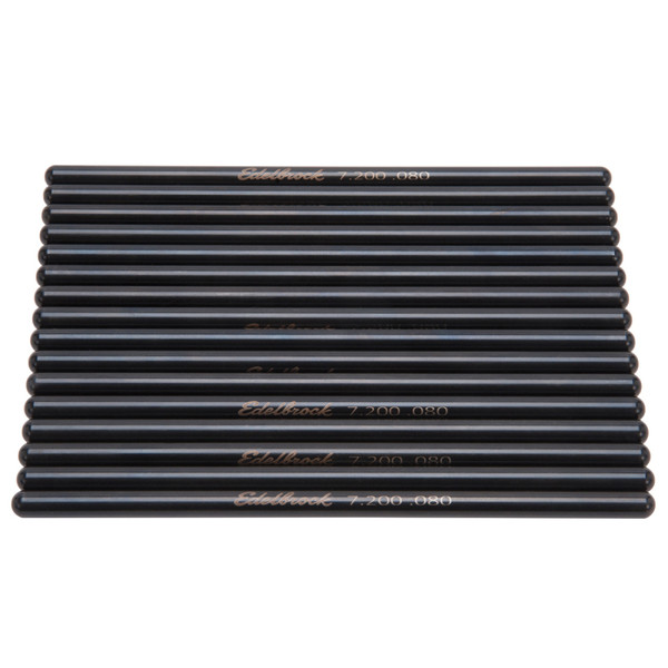 Edelbrock part #9653 Pushrods are designed for Chevy 348/409 "W" series V-8 engine applications. These one-piece pushrods are manufactured from high quality 4130 Chromoly steel tubing that has been surface hardened for maximum durability. They have precise formed wedged ends for a high quality fit with the cup seats. A black oxide finish is added for corrosion resistance. Pushrod Specifications: - For hydraulic roller lifters - Outside Diameter: 5/16" - Length: 7.200"
