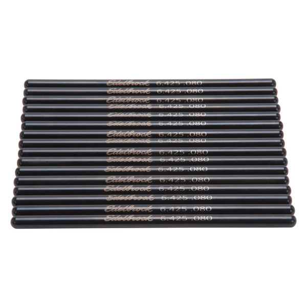Edelbrock part #9658 Pushrods are designed for small-block Ford 289-302 V-8 engine applications. These one-piece pushrods are manufactured from high quality 4130 Chromoly steel tubing that has been surface hardened for maximum durability. They have precise formed wedged ends for a high quality fit with the cup seats. A black oxide finish is added for corrosion resistance. Pushrod Specifications: - For hydraulic roller lifters - Outside Diameter: 5/16" - Length: 6.425"